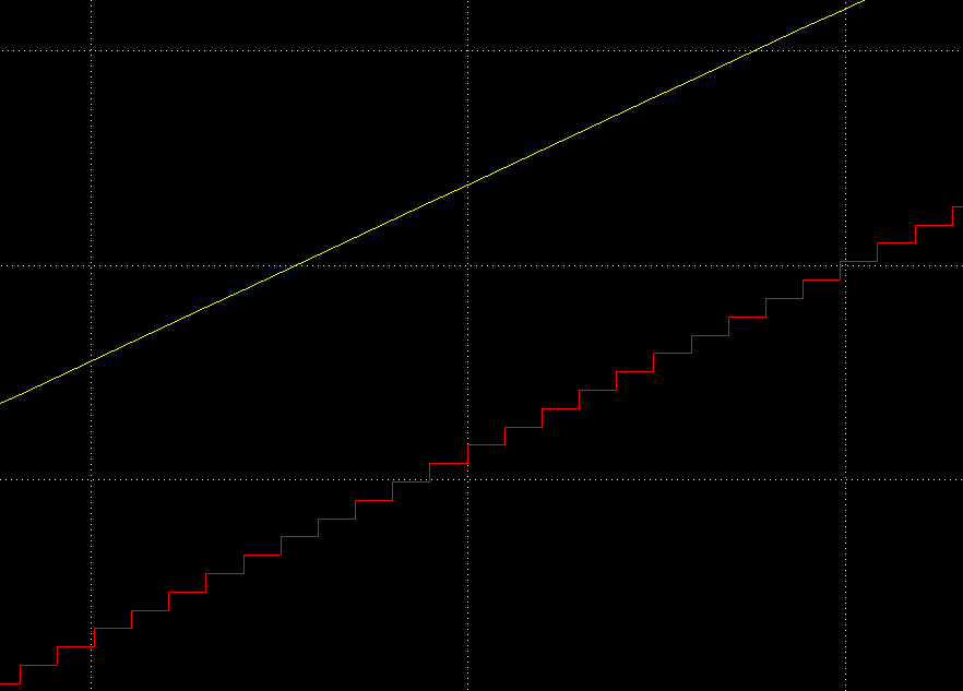 Weiß jemand, warum dieses Signal solche Sprünge aufweißt? Ich würde ja auf die Clock tippen, aber lt. Dokumentation erzeugt diese eine Ausgabe für jeden Schritt in der Simulation. Für Hilfe wäre ich also dankbar!