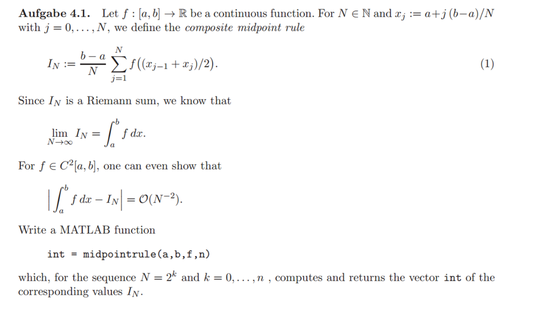 MatLab Function - Fehler bei Mid-Point-Rule |