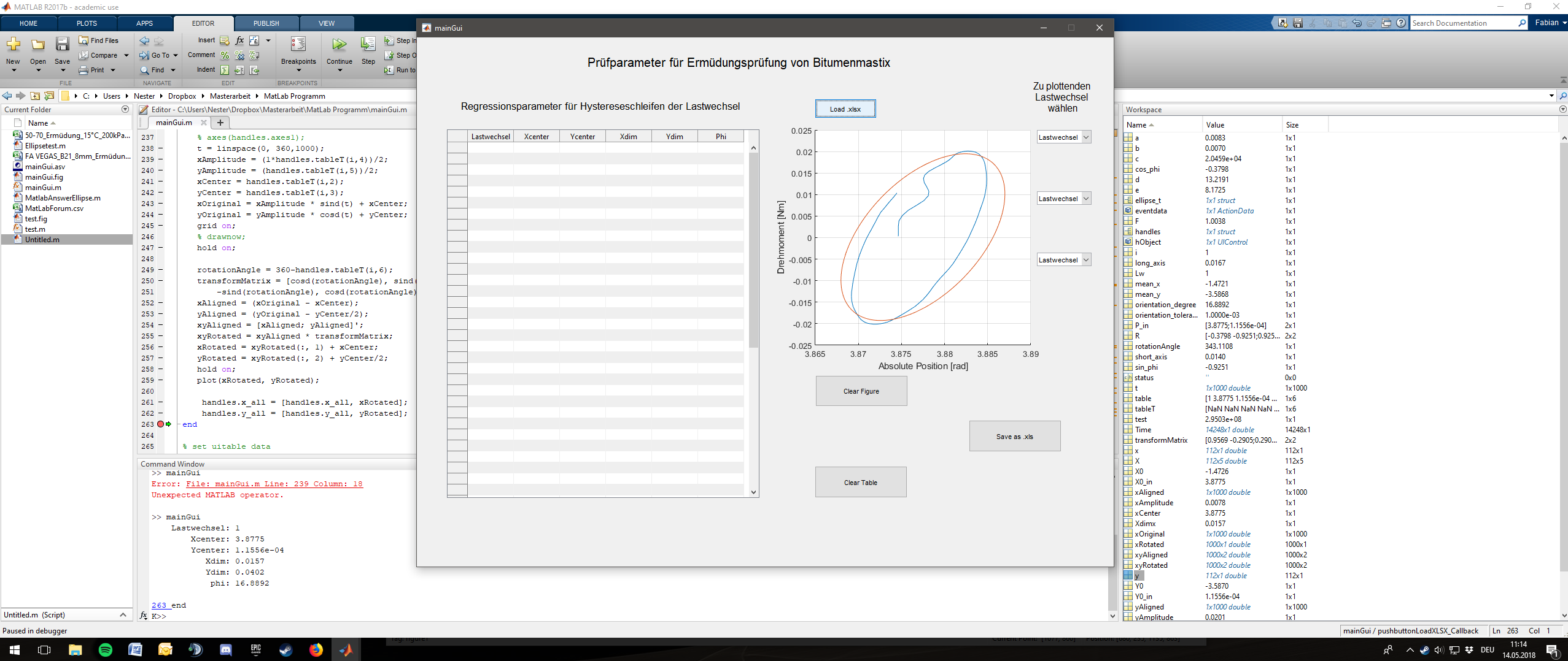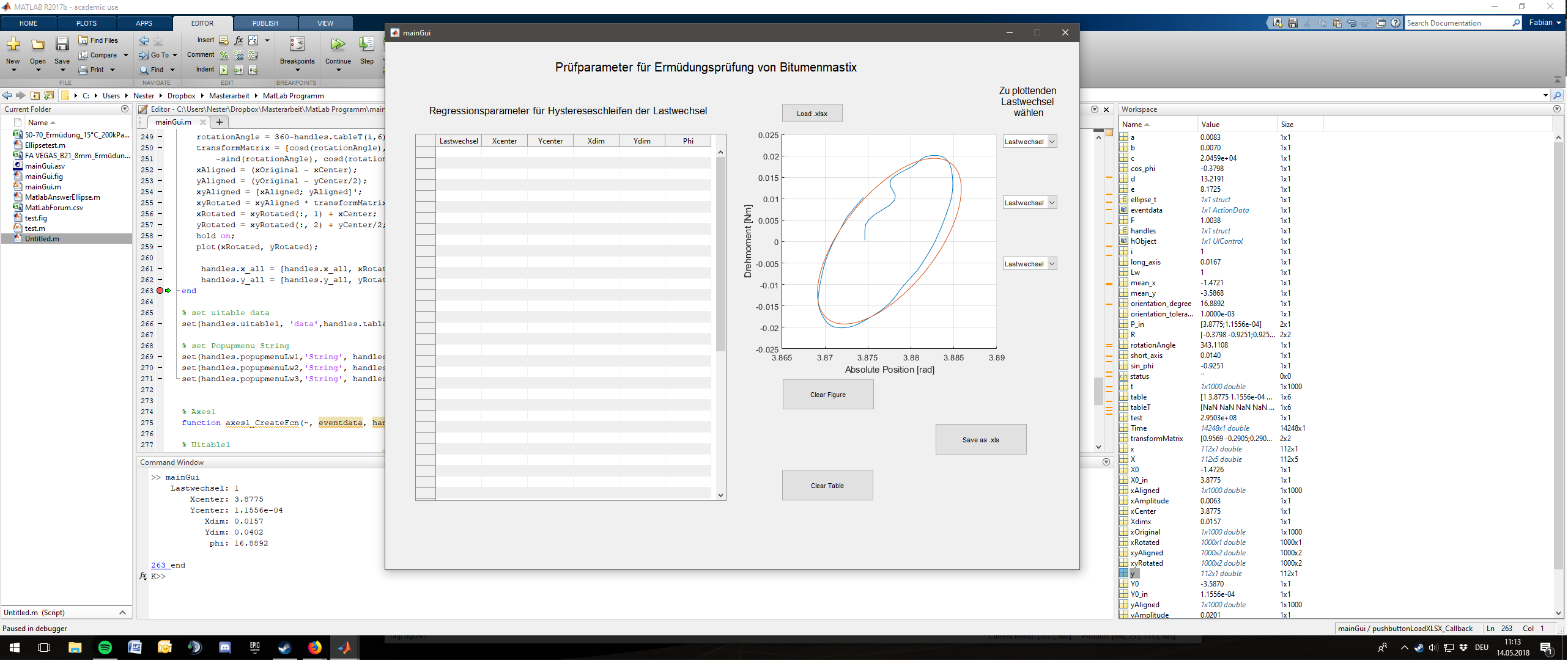 Mein GUI lädt eine Excel-Datei, die aus X (zwischen 30-130, je nach Datei) Ellipsen besteht. Bzw. aus Messdaten aus dem Labor, aus denen Ellipsen berechnet werden können.