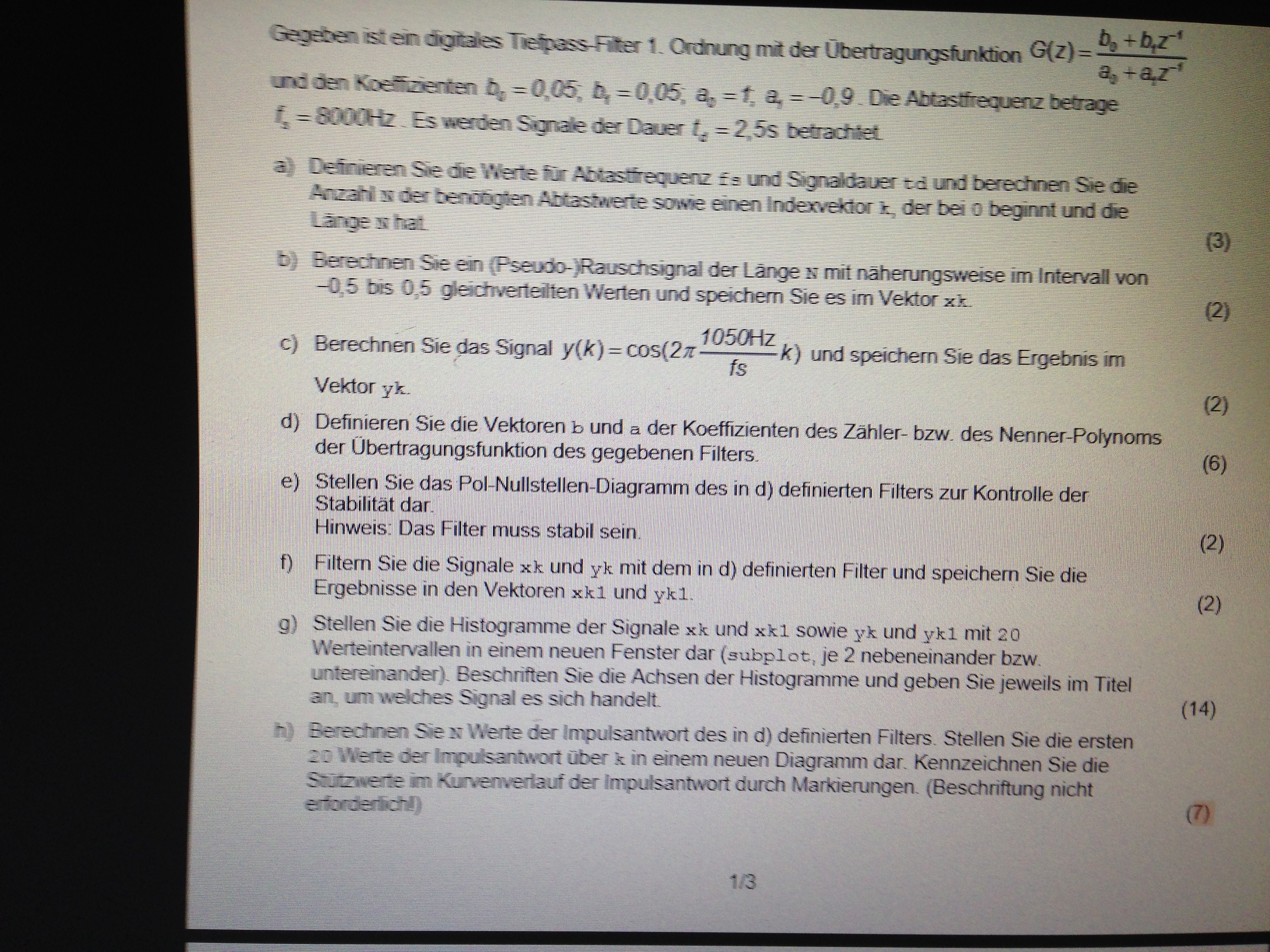 Hallo alle zusammen habe gerade ein problem bei einer Matlab Aufgabe die ich hier als foto poste :