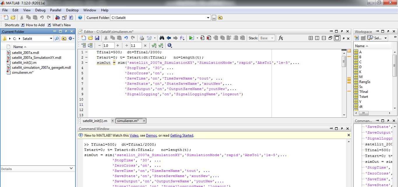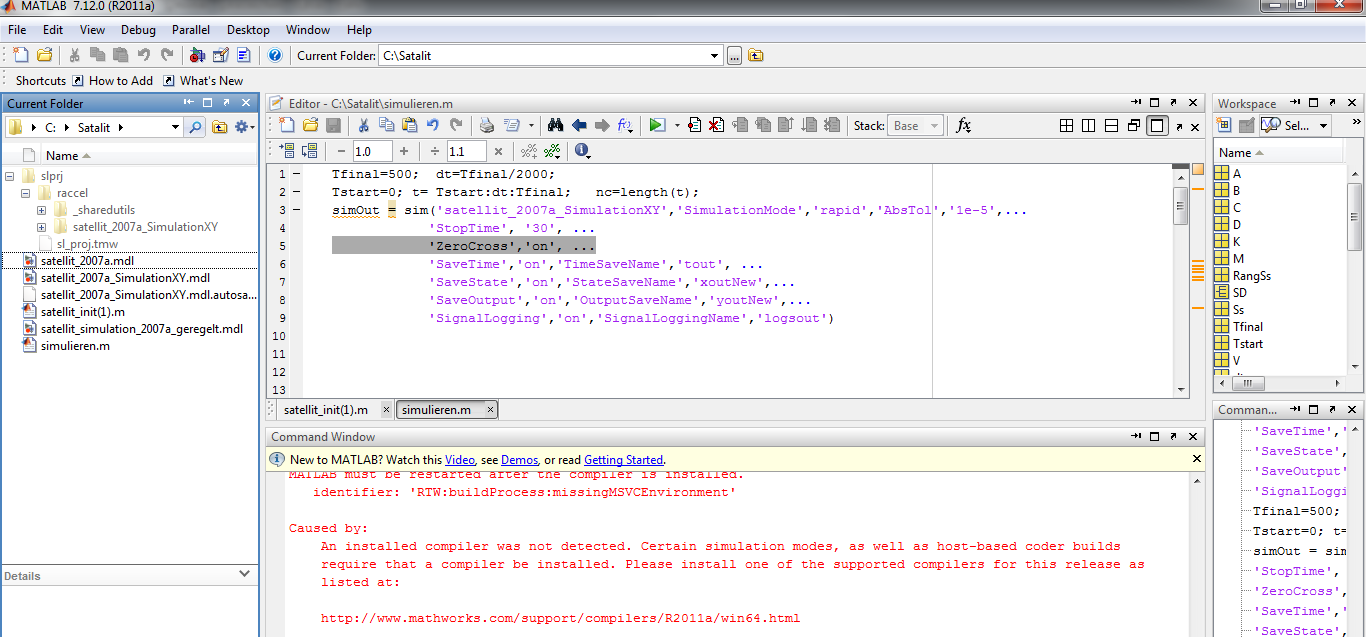 Wenn ich 'satellit_2007a_SimulationXY' in Command window eingebe, bekomme ich diesen Fehlermeldung: