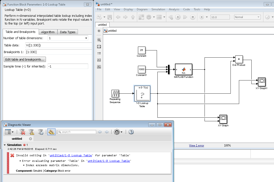 Error evaluating parameter 'Table' in 'untitled/1-D Lookup Table'