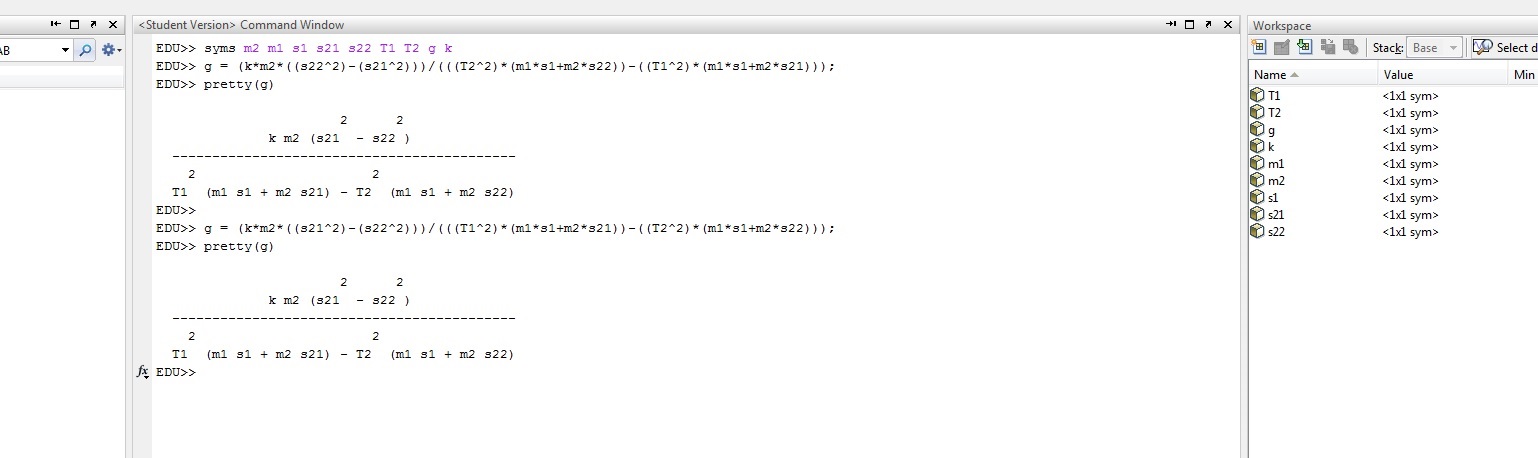 Matlab vertauscht Terme/Ausdrücke/Variablen bei Eingabe |