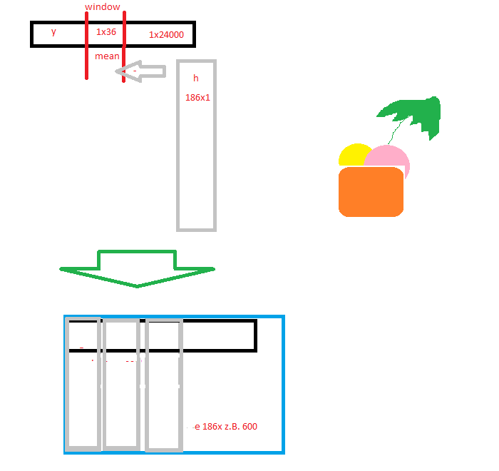 ja genau also y ist ein recht langer vektor, sagen wir mal 1x240000. Aus diesem nehme ich dann immer ein Fenster, dessen mittlere quadratische Abweichung ich berechne.