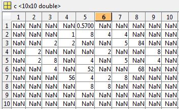 ich habe eine quadratische Matrix "c", wie in der Grafik angezeigt. Die Werte in der Matrix sollen ein kreisrundes Oberflächenprofil ergeben. Außerhalb des Kreises sind die Werte mit NaNs gefüllt (was auch gewollt ist). Allerdings sind in der Kreisfläche ebenfalls Fehlstellen, die mit NaNs gefüllt sind. Diese möchte ich nun füllen (interpolieren). Ich bin wie folgt vorgegangen.
