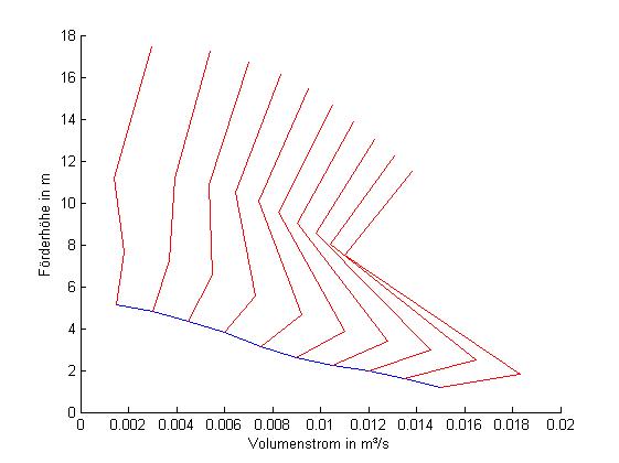 plot(qv, H) grid xlabel('Volumenstrom in m³/s') ylabel('Förderhöhe in m') clear vf