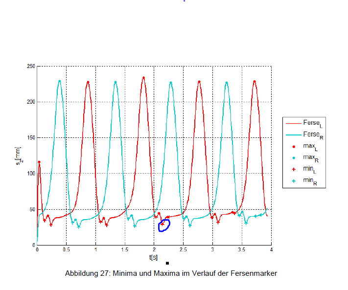 kann dadurch auf das Intervall zwischen den Maxima im Fersenmarkerverlauf