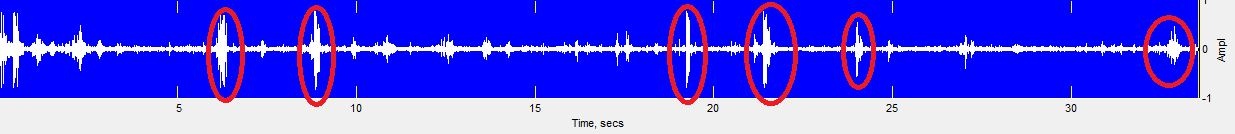 Eigentlich ist jedes Geräusch, dass sich "deutlich" abhebt (in der Abbildung durch roten Kreis), von Interesse. Ich befürchte ich komm nicht drum irgendeinen Grenzwert festzulegen, ab dem das Signal betrachtet werden soll.