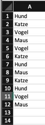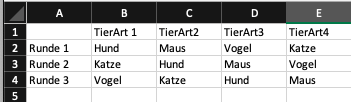 Nun konnte ich meine Dateien (die im Workspace gespeichert sind) zwar auf Excel exportieren, jedoch ist das nur in eine Spalte gelistet, sodass die Reihenfolge für jede Runde nicht wirklich zu erkennen ist (es sind 3 Runden/Durchläufe) (siehe Screenshot).