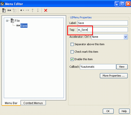 Ich habe mir im guide ein menü editiert. mit "Datei" als name. sowie "Laden", "Speichern", "Neu" als untermenüs von datei.