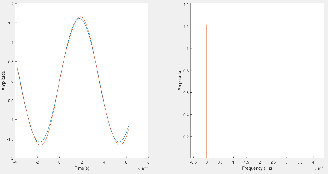 Habe genau zwei Perioden genommen und das Ergebnis ist leider falsch. Entweder sind das doch nicht genau 2 Perioden, wegen der Abtastung, kann ich vllt. nicht genau 2 Perioden haben oder das Programm hat einen Fehler