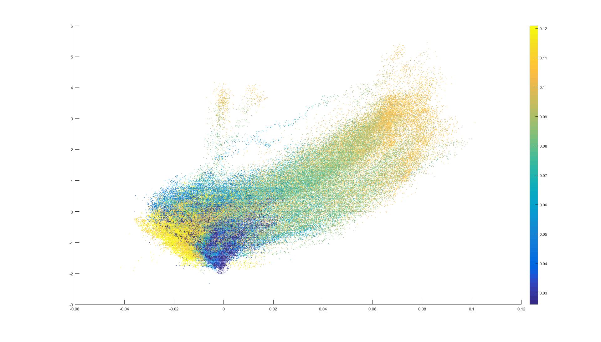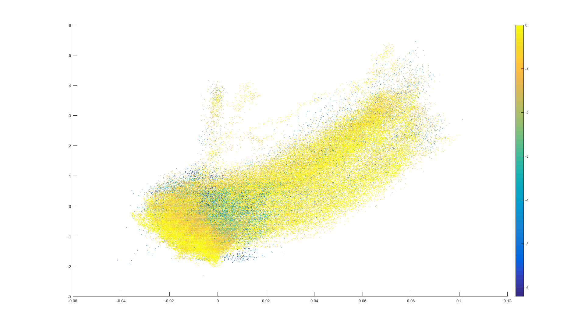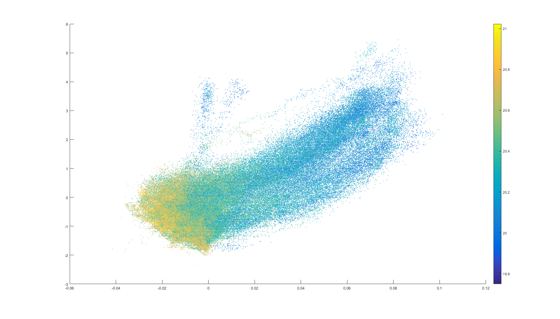 ich habe einen großen Satz x und y Messdaten (200T Zeilen). Ziel ist es möglichst genau von x auf y schließen zu können. Zeichne ich x und y in einen Scatter-Plot ergibt das zwar einen recht guten Korrelationskoeffizienten (die Punktewolke verläuft schräg nach oben) aber die Spreizung / Streuung in y-Richtung ist doch recht hoch, zu hoch sozusagen.