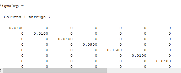 | dabei muss es sich bei der Kovarianzmatrix SigmaDep um eine semidefinite Matrix handeln, also es darf nur die Diagonale mit Werten besetzt sein. |