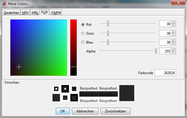 Daher habe ich mir die Grundeinstellungen von Matlab angeschaut (s. Anhang). Diese zeigen in der Achsen- und Gitterdarstellung kein sattes "schwarz" auf, worauf ich aktuell die schlechte Qualität zurückführe.