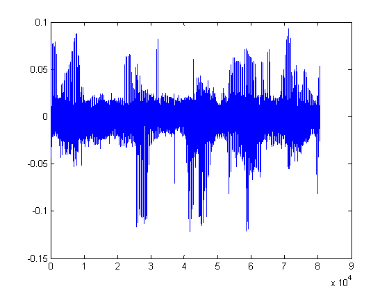 Mittels FFT soll man angeblich aus dem Plot die Frequenz ablesen können. Allerdings bekomme ich kein so schönes Ergebnis wie in der Matlab-Hilfe gezeigt. Ich könnte nun vermuten, dass es aufgrund eines Rauschens oder fehlender Dämpfung zu wirr ist. Daher habe ich versucht den Befehl resample zu nutzen, aber dessen Realisierung liegt mir noch fern.