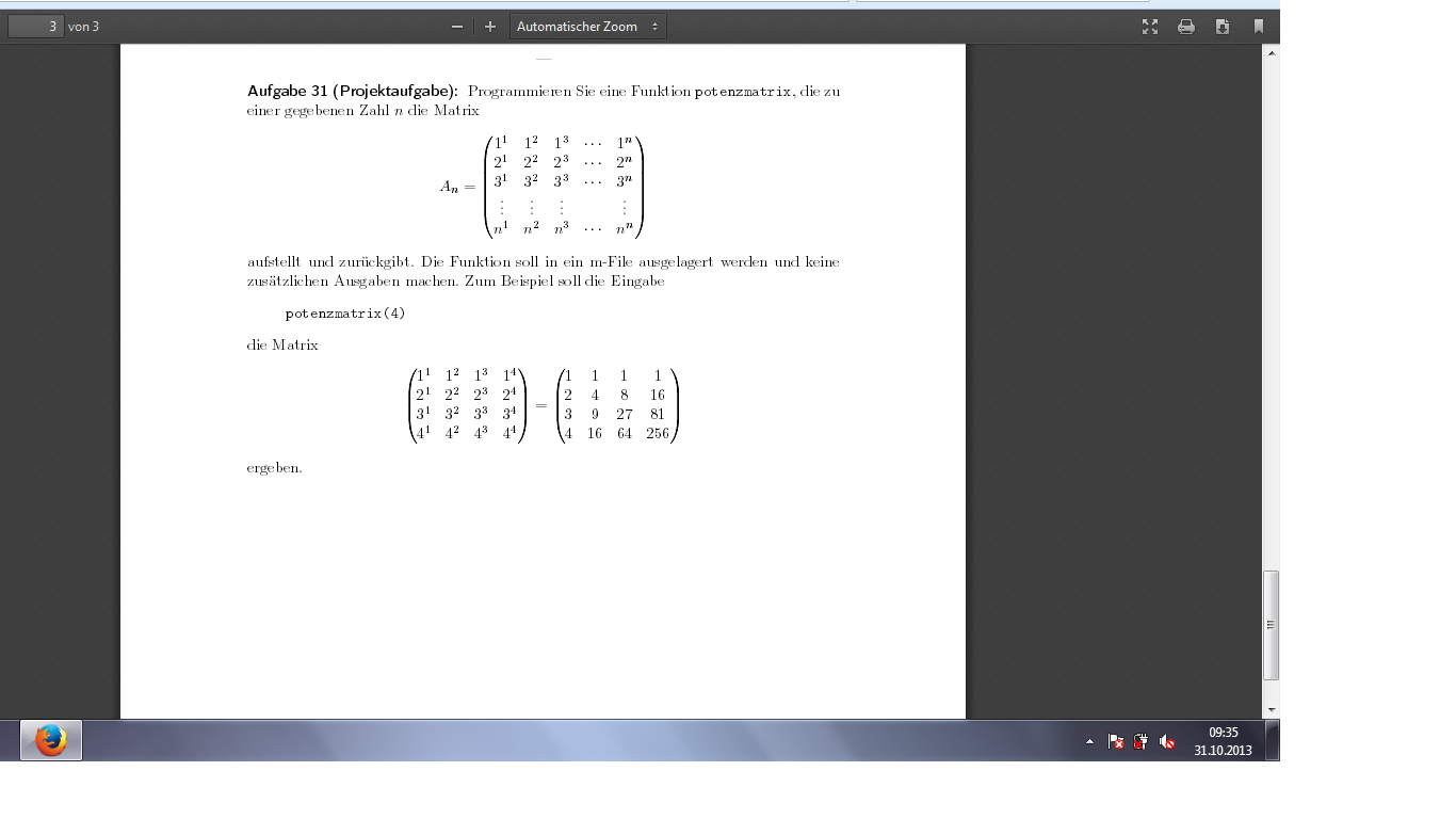 Octave Aufgabe mit Potenzmatrix |
