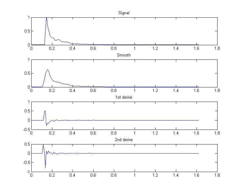 Zusätzlich habe ich das Signal geglättet und die 1. udn 2. Ableitung gebildet.