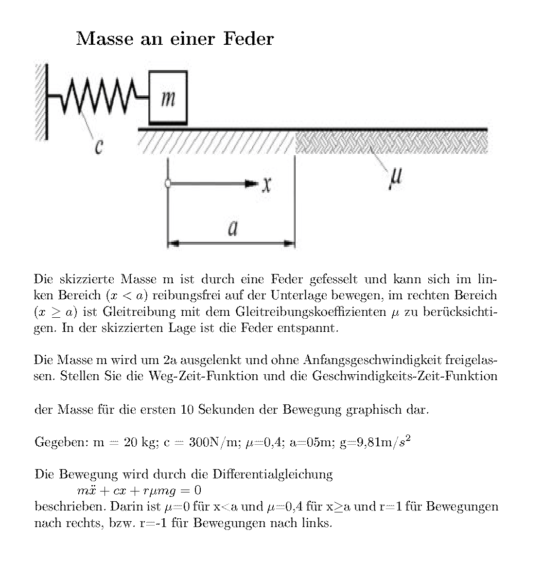 Das Problem ist ja das die Reibkraft immer entgegengesetzt zur Bewegungsrichtung ist. Daher ist eine Fallunterscheidung notwendig: