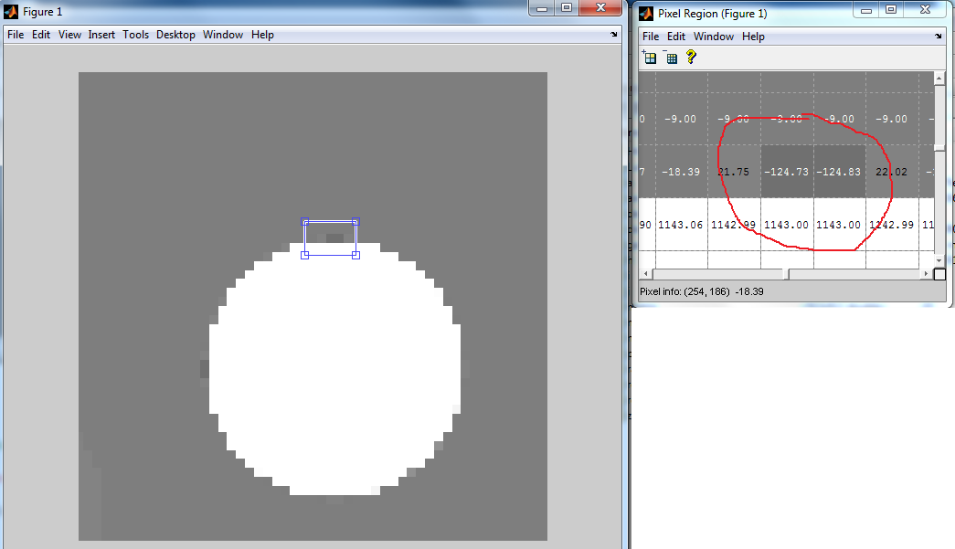 for i=1:size(matrix,1) for j = 1:size(matrix,2) if(i-mittelpunkt_x)^2+(j-mittelpunkt_y)^2 <= (radius/2)^2