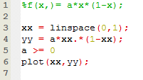 dein a musst du vor der Zeile 4 definieren, sonst weiss Zeile 4 gar nicht was du für a eingegeben hast. Und für a musste doch bestimmt selber eine Zahl >=0 aussuchen, dann hätteste ne Parabel.