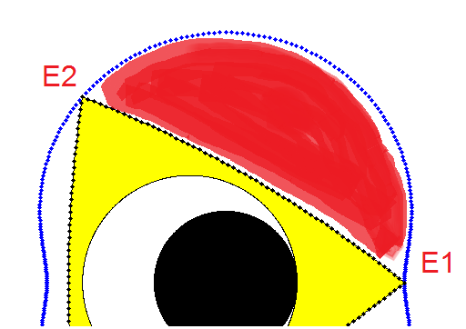 Dazu möchte ich diese Polyarea festlegen lassen indem ich von E1 die Blaue Linie die Punkte erfassen lasse und dann von E2 die schwarzen Punkte zu E1, damit am Ende ein Polygon entsteht, von dem ich mir die Fläche anzeigen lassen kann. (Siehe Bild)