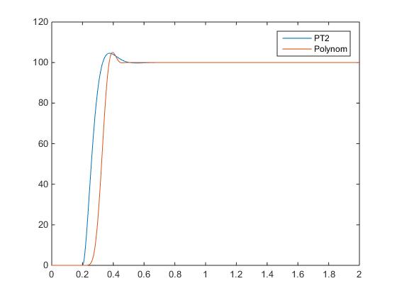 2. Es wird ein Polynom gegeben aber es ist nicht exakt was ich aus PT2 Glied bekomme. Verlauf ist ungefähr gleich dass heißt, es wird von Null auf 100 z.B. gehen aber es gibt Schwingungen.