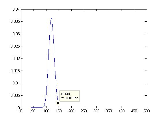 Für K<121 und z.B. n=500 klappt das gut. Sobald K>120 gewählt wird, plottet MATLAB nicht mehr die gesamte Poisson-Verteilung, sondern bricht bei einem Part meiner Abbruchbedingung (W>=0.002) ab. Als Anzahl wird ab diesem K nur noch ans=170 ausgegeben...