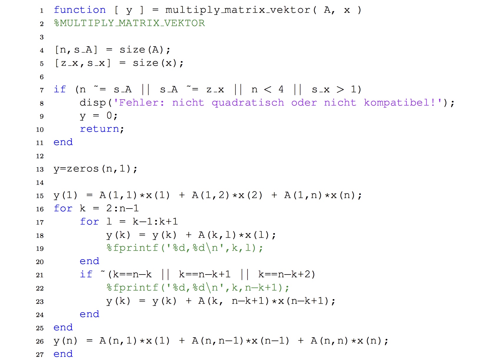 Folgendes Problem: Ich habe einen Code gegeben (siehe angehängte Datei) und soll heraus finden, welche Einträge der nxn-Matrix verschieden von 0 sein dürfen. Leider habe ich keinen Lösungsansatz für dieses Problem.