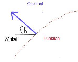 Ich weiß nicht, ob ich deine Frage richtig verstehe. Der Winkel beta ist der Winkel der Steigung der Funktion plus 90 Grad. Frage geklärt?
