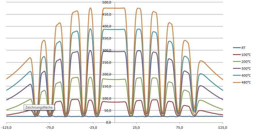 In meinem Temperaturverlauf finden sich lokale Minima, da sich eine gekühlte Heizspule zwangsläufig noch zwischen dem zu messenden Objekt und Kamera befindet und ich das auch nicht ändern kann.