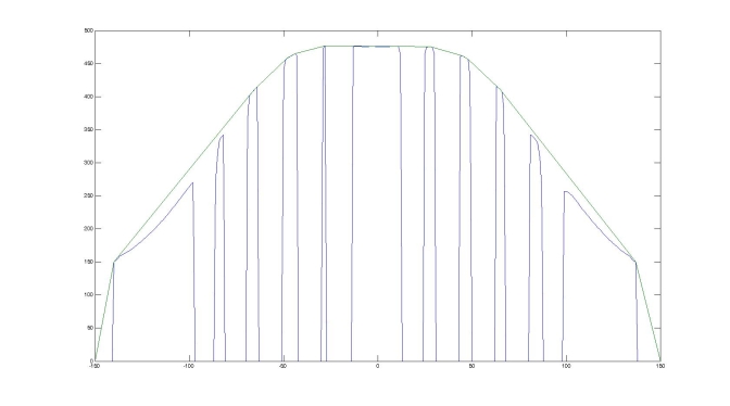 eine Möglichkeit wäre, mit convhull die konvexe Hülle zu bestimmen (für jeden Verlauf separat).