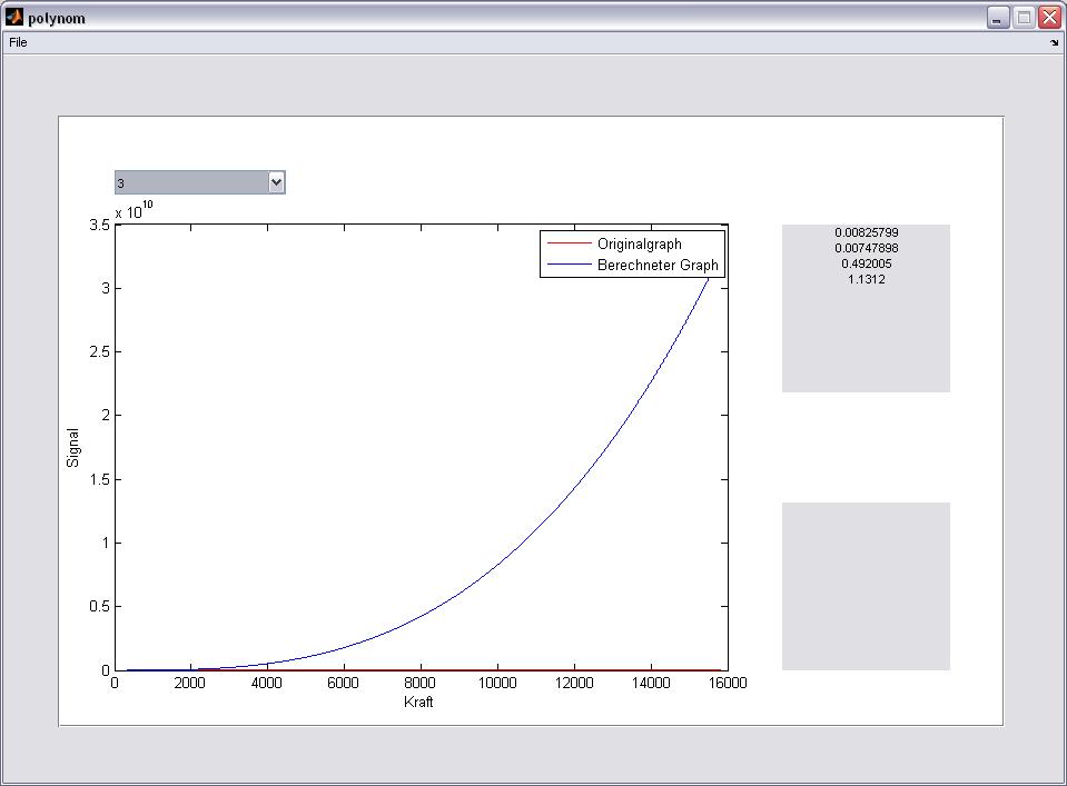 Ich habe mit GUIDE ein GUI erstellt, das aus einer XML-Datei Messwerte (knapp 4000) einlesen und dann mittels polyfit die Koeffizienten einer Ausgleichskurve berechnen soll. Danach sollen der Original- und der berechnete Graph geplottet werden (siehe Anhang).