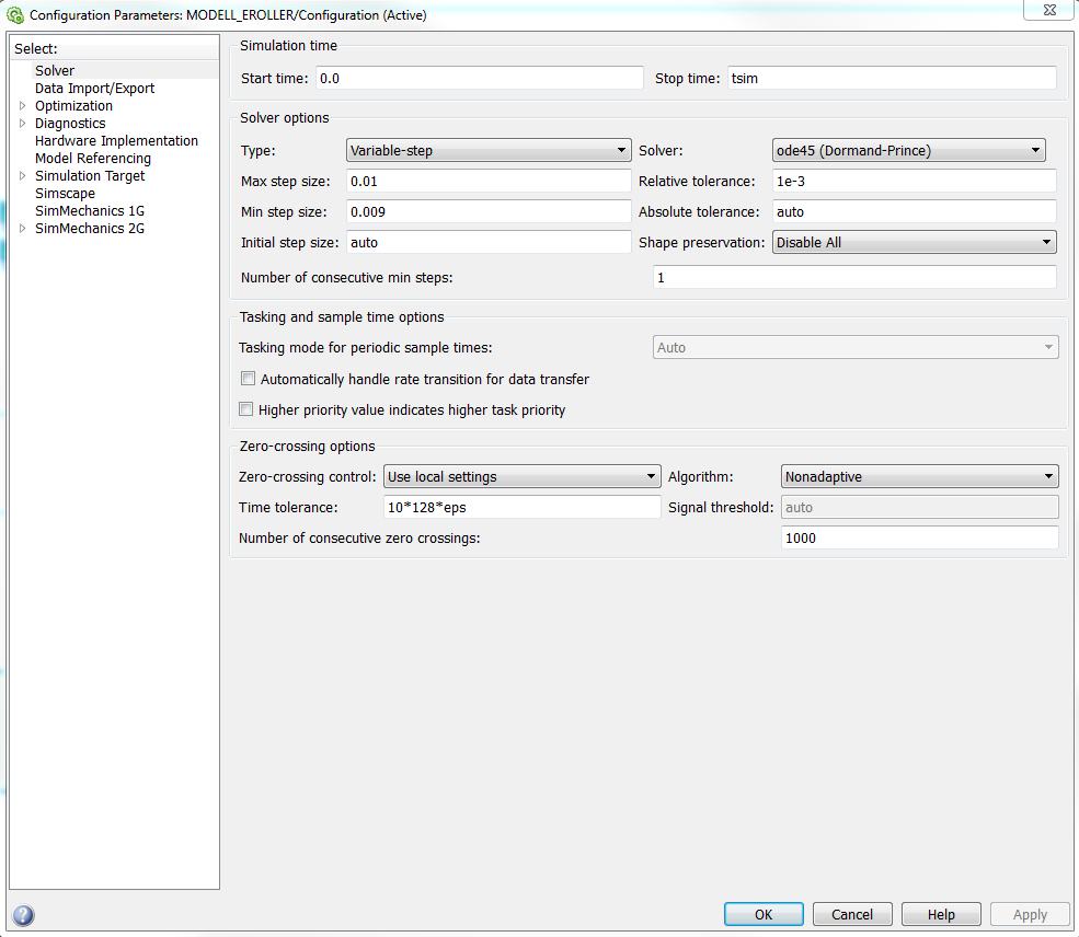Ich kenne nur das "Model Configuration Parameters" - Menu. (Siehe Anhang).