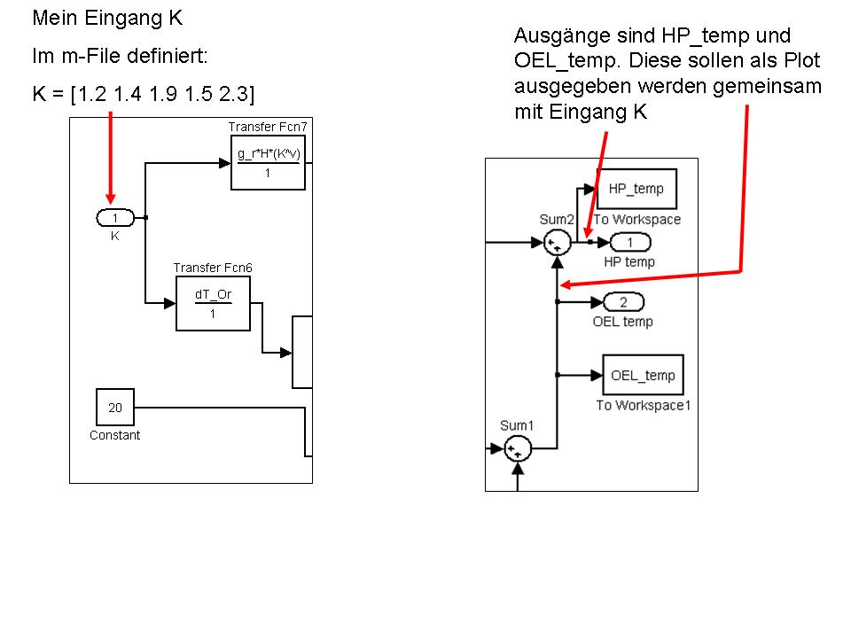 ich habe wieder mal nen Matlab Problem. In Simulink hab ich mir meinen Regelkreis aufgebaut. Nur mit Eingängen und Ausgängen habe ich Probleme. An den Eingang soll eine Treppenfunktion aufgeschaltet werden. Dazu habe ich einen In benutzt. Bis jetzt habe ich im m-File mein K in einem Zeilenvektor definiert. Kann ich das so machen? Ich habe ein Screenshot davon mit angehängt