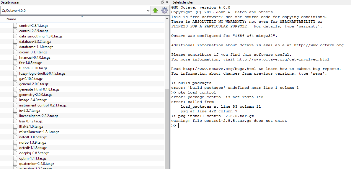 Probleme beim Laden des Control Package in Octave 4.0.0 |