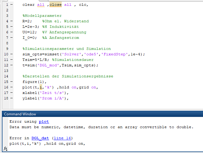 es gibt kein i im Workspace. Im Workspace wird eine Variable t erstellt, die i enthält.