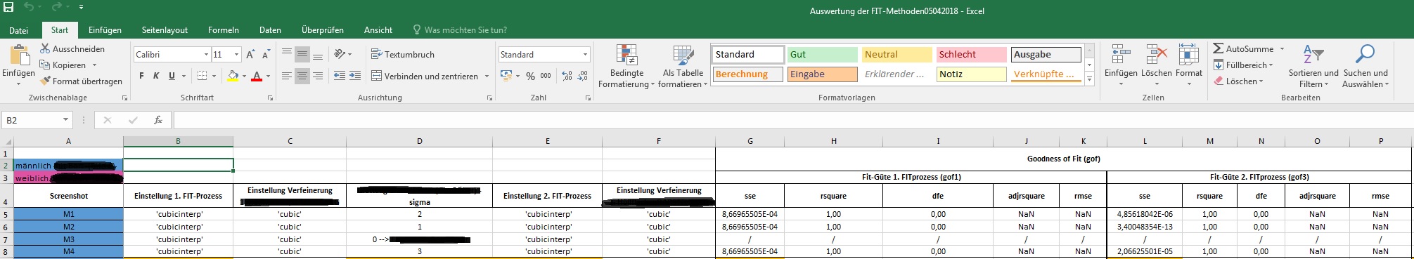 Jetzt möchte ich gerne über Matlab eine Tabelle erstellen, die mir übersichtlich die Parameter und die zugehörigen Ergebnisse auflistet im Stile einer von mir erstellten Excel-Datei (s. Anhang).