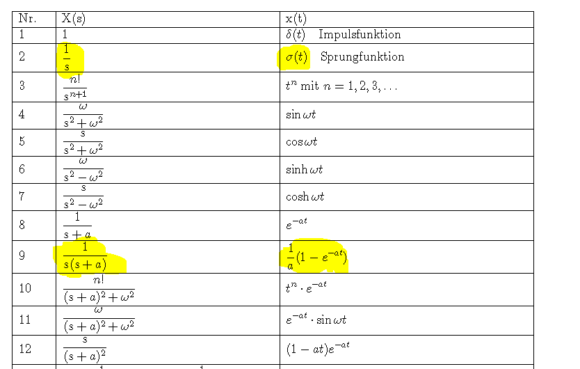 Die regelungstechnische Lösung für solch eine Aufgabenstellung wird normalerweise mit Hilfe von Laplace- Korrespondenztabellen (Anhang).