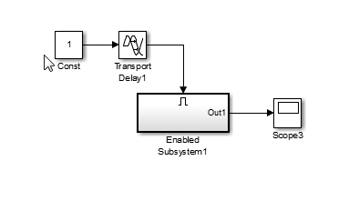 Nun möchte ich, dass der Pulsgenerator auch erst "losläuft", wenn das Subsystem enabled wird. Bis jetzt sieht der Ausgang des Subsystems wie in Anhang 3 aus.