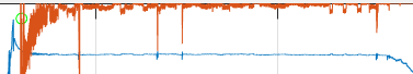Mir ist aufgefallen, dass ich dadruch das Problem nur so halb löse. Ich brauche eher eine Funtkion, die ein anderes Signal für eine bestimmte Datenmenge (im besten Fall so lange wie das Plateau) um den grünen Punkt ignoriert oder glättet. Bisher habe ich es mit einer KOmbination aus if any und einem Schwellwert probiert.