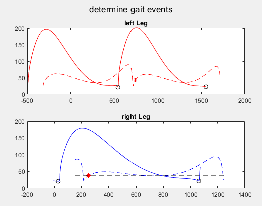 Ich habe Koordinatenverläufe von Beinen beim menschlichen Gang. Über verschiedenen Rountinen habe ich recht zuverlässig die Punkte berechen können, an dem die Ferse auf dem Boden aufkommt und die Zehen den Bode verlassen. Doch leider schleicht sich (je nach Aufnahme Qualität der Koordinaten) fehlerhafte Punkte ein oder Punkte werden nicht erkannt.