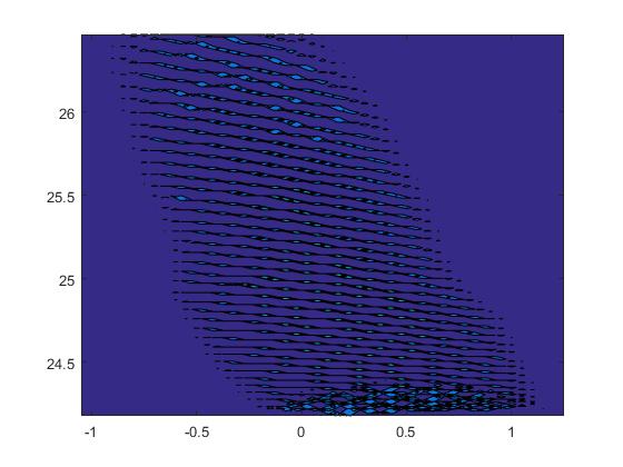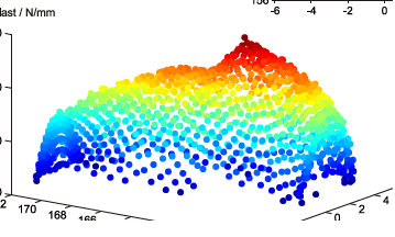 Also ich habe jetzt hier mal mir etwas zusammengebastelt. Das mit den Punkten farbig bekomm ich aber noch nicht ganz hin, sondern eine Fläche durch eine Interpolation. Das haut anscheinend, wie Harald mir schon gesagt hat , nur mit scatter3 hin. Doch damit komm ich leider im Moment noch nicht klar. Könnte mir jemande die Funktion kurz erklären?
