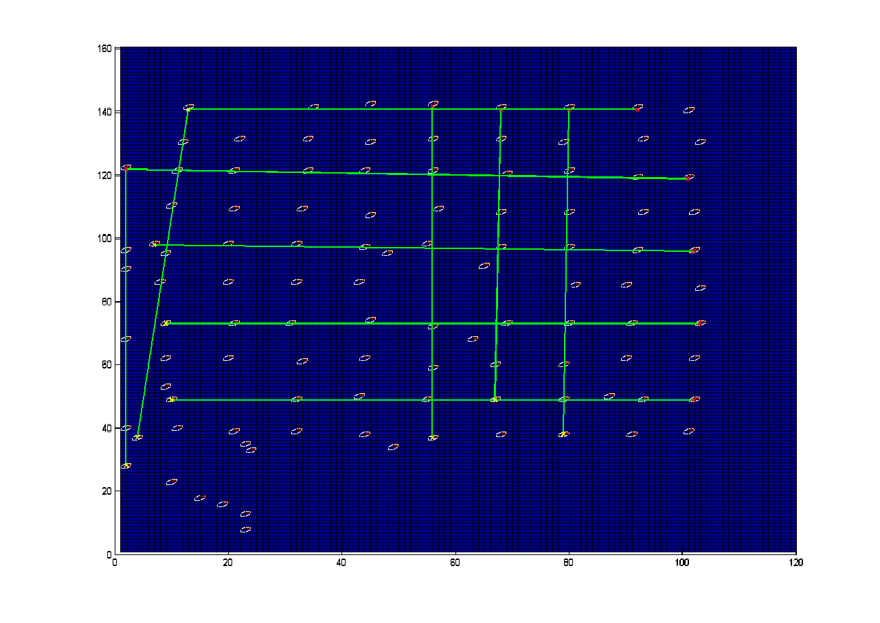 Nun habe ich die Noppen durch lokale Maxima repräsentiert, die in einer Matrix im Format 160x120 liegen.