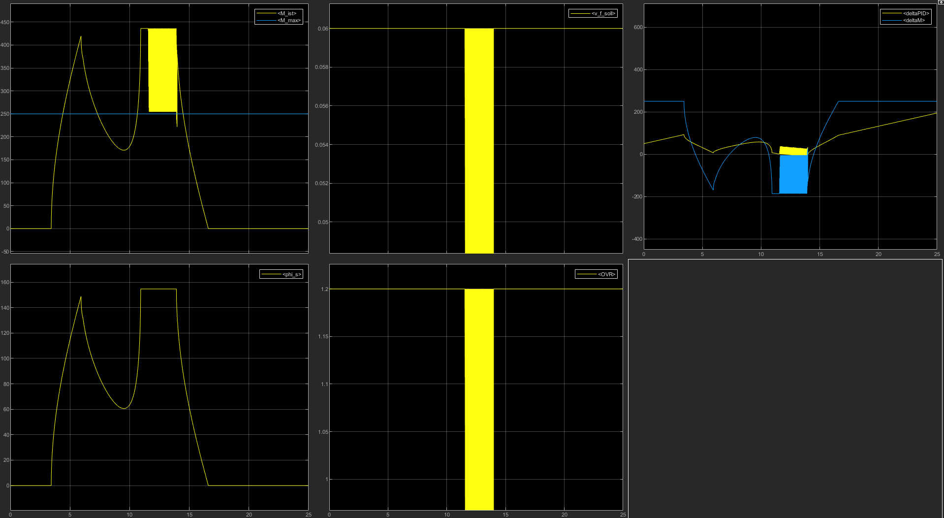 Das Soll-Moment wird über eine Konstante (hier 250) vorgegeben, das Ist-Moment über vereinfachte Zusammenhänge berechnet.