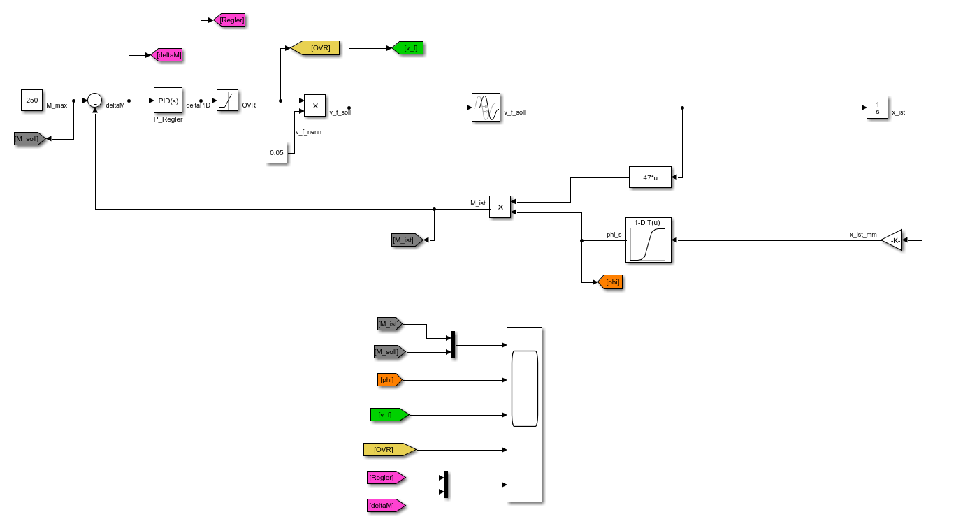 der Regelkreis (s. Anhang) soll anhand eines Soll-Ist-Momentenvergleichs die Vorschubgeschwindigkeit anpassen (über einen Override).