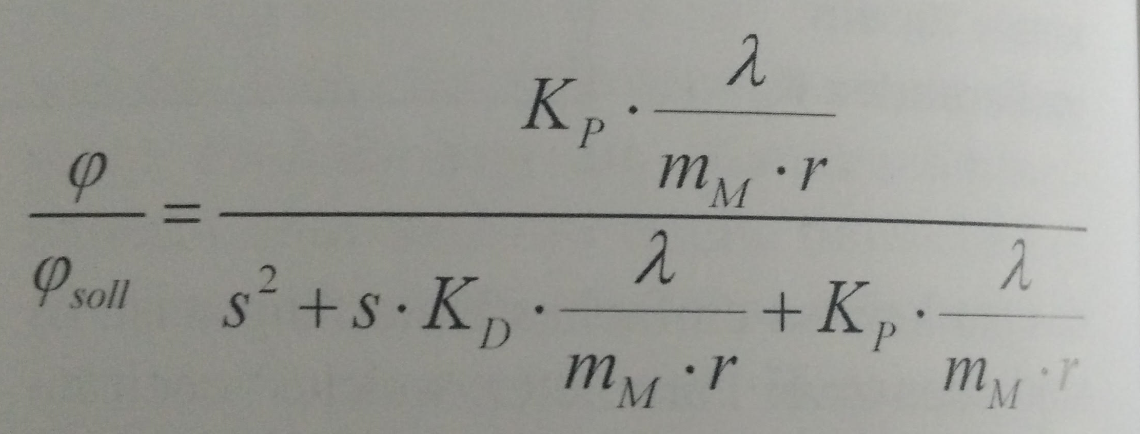 add Kp oder Kd: Ich hab aus einen Buch gewisse Grundwerte, die ich dann mit der unterschiedlichen Achsenlänge bzw. Achsengewicht auf meine Kp und Kd komme(die aber anscheinend trotzdem nichts ins Modell passt, das ich in Matlab modeliert habe(siehe übertragungsfunktion mit STEP)