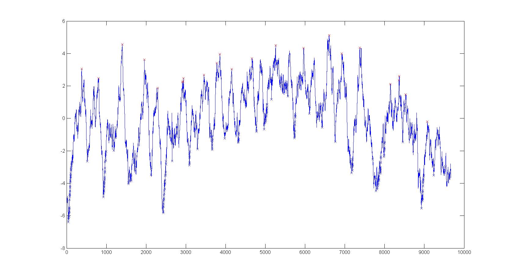 Soweit so gut - nun repräsentieren die Zahlen im Vektor jedoch Minima, bzw. Maxima welche durch ein stark verrauschtes Signal sehr nahe beieinander liegen.