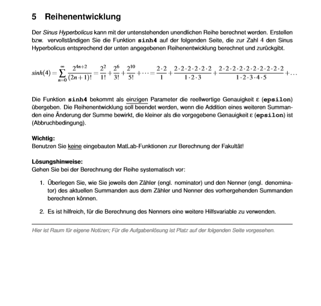 Titel: Reihenentwicklung Sinus Hyperbolicus