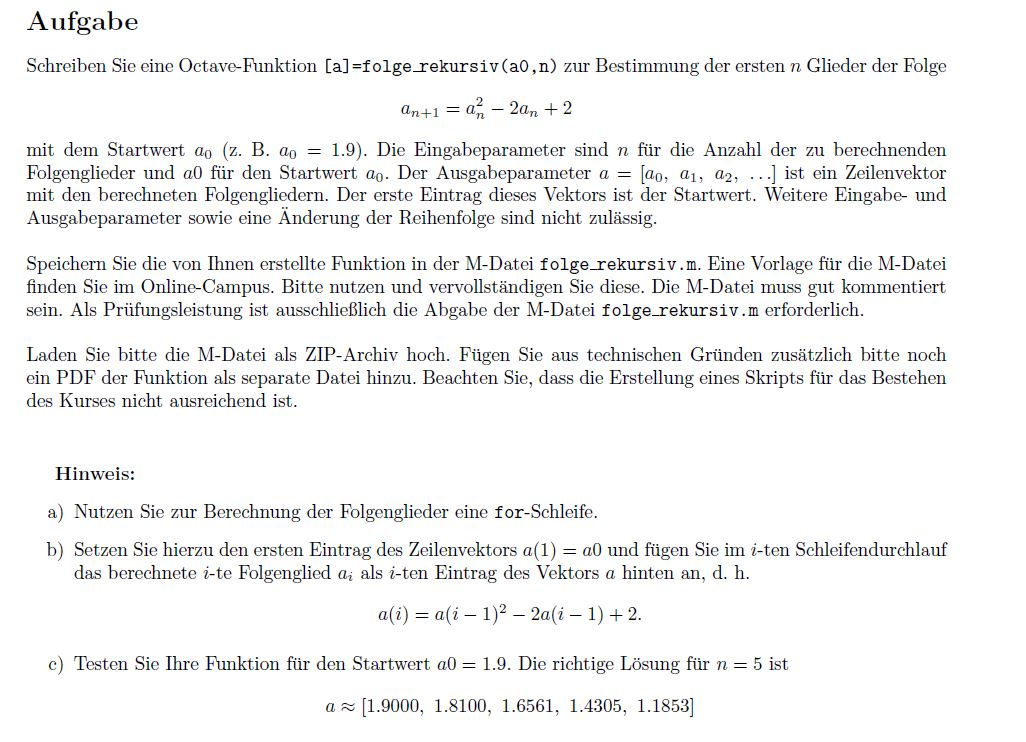 Titel: Rekursive Folge als Octave Funktion schreiben
