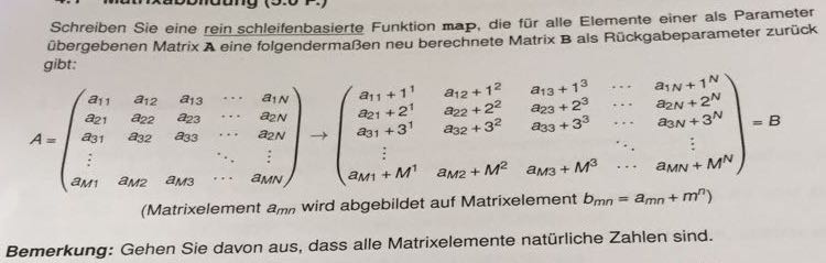 3. Schau dir nochmal dein Skript zu Matrizen und Schleifen an. Bzw. such im Internet nach Einführungen zu den Themen. Das was du da an Code eingegeben hast ist sehr weit entfernt von der Lösung und macht generell keinen Sinn.